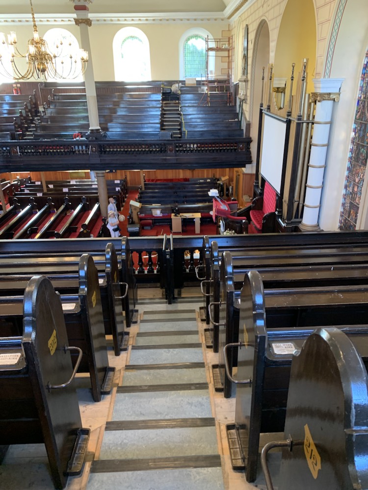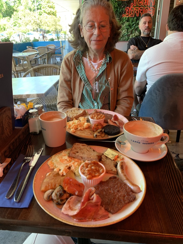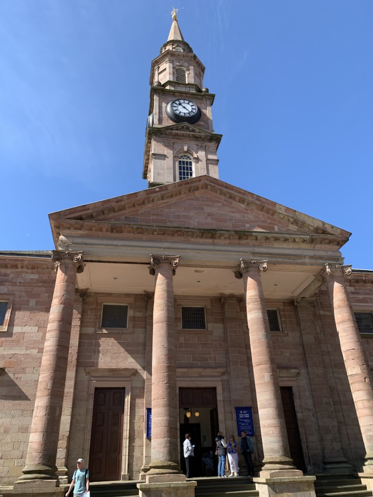 We were looking forward to today as it will be our first visit to a Whisky Distillery in Scotland and we will be visiting Loch Lomond. However the tour doesn’t start until noon. Patsy and David were off early as they visited Glasgow, which is close by and they had not been there before. So after docking Starboard to Dock, allowing us to get a terrific view of the town, we left by 8:30AM and embarked on a very close walk (5 – 10 minutes) into Greenock. We asked the locals where they might suggest we have a nice breakfast. One man suggested a pub, while 2 separate ladies suggested a nice Cafe. Showing the difference in priorities!!!! We ended up and thoroughly enjoyed the Cafe Monza (118-120 Cathedral Street, Greenock PA15 1BB Phone +44 (0) 147-572-7317) and enjoyed a terrific Scottish Breakfast (without the Haggis), before wandering through the town, visiting a terrific Cathedral (Wellpark Mid Kirk) and on through the Mall. That was very depressing as the first section we walked through – some 40 shops – were all empty. There was no commercial activity. The second part did have a lot more activity, although it appeared a bit seedy and dated and needed a bit of a “facelift”, but at least there were shops for locals, no tourist-type shopping. We walked out on the Main Street, which was under repair and there again, shops, but more Bingo parlors, betting establishments, poundland (Dollar Stores) etc. So we headed back to the nice Cruise Terminal building where there were a lot of very helpful ladies that took time to help each person out.