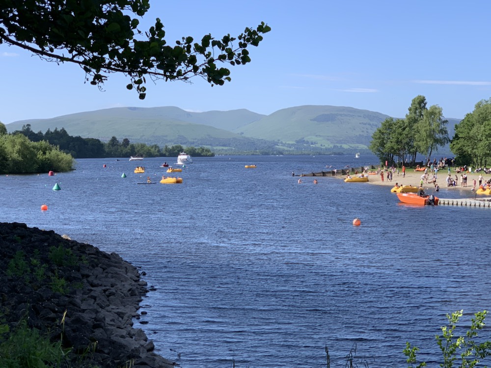 Back on the coach we then drove through the beautiful scenery to Loch Lomond, the largest lake by surface area in Scotland (Loch Ness is far deeper so is the largest by volume of water). When we arrived at the upper corner, the place was packed. It being Saturday, a gorgeous sunny day brought out many locals to enjoy the water. However this was further populated as it was a comic book character convention so there were stalls with everything related to comic books and characters dressed in outfits from those books. It was fun though to see so many people out and about enjoying the day.