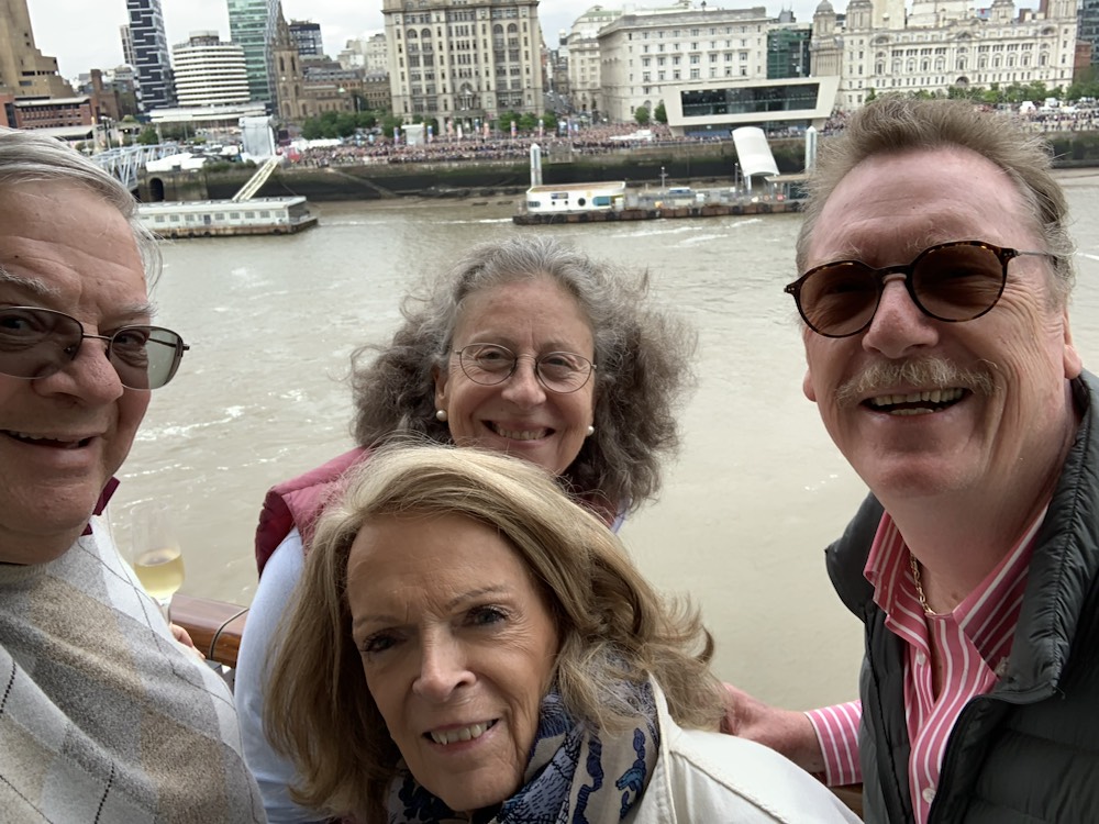 After we docked, Starboard to dock, Patsy and David did a Liverpool tour which seemed to be a lot of walking and a bit of coach time. We wandered into Liverpool scouting out the church of the Blessed Sacrament. Anne was delighted as not only was the Blessed Sacrament exposed, but mass was celebrated and afterwards, she spoke to the priest to have her rosary from Santiago de Compostela blessed and found out that the church was staffed by the Blessed Sacrament Father (SSS), same order of priests that staff the church we were married in New York City and the local priest knew well the priest that married us – a small world!!! We then wandered over to Matthew Street and down into the Cavern Club, where the Beatles got their start in the early 1960’s. We had a drink and listened to the musician who was playing Beatles songs. Then to Lunch at the Cavern Restaurant for lunch and another Guinness Beer, before returning to the ship as we had 2 options: – 1) be back on the ship by 2:30PM or stay ashore until the ship re-docked at 6PM. We opted to be on the ship for the naming festivities.
