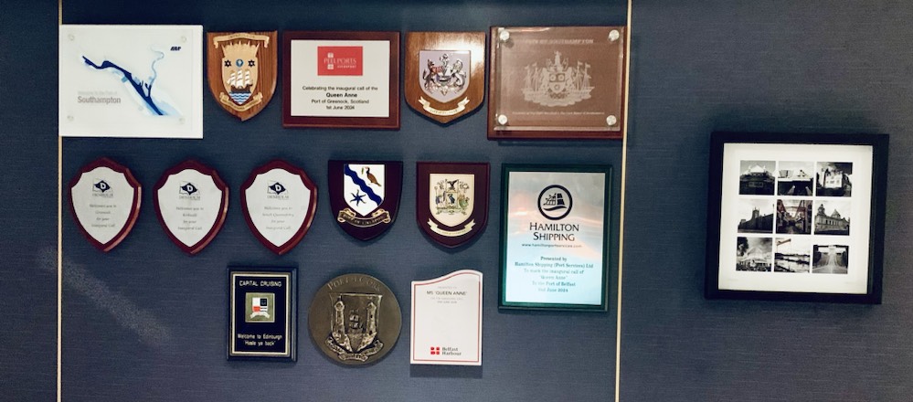 We arrived back at the Mayflower terminal, Port to Dock, early this morning. After breakfast we got off the ship, just in time as there was a medical emergency that stopped the departure for some time. After obtaining Patsy and David’s luggage and finding the taxi we had booked, we were on our way to Wokingham, to drop the Hubp’s at our home, explain the issues of the home and return in the same Taxi to the ship. We were back on board by 2 PM and enjoying a Pub lunch on Queen Anne. The realization hit us that next time we get to Southampton, it will be us that will be getting off and trans-shipping to the Queen Mary II. When we returned, we found that there was a new Captain – David Hudson in charge. The Officers for this segment are:-