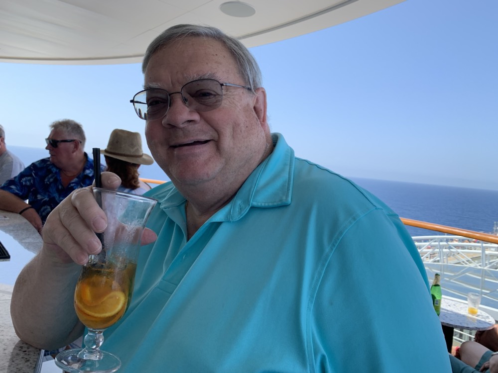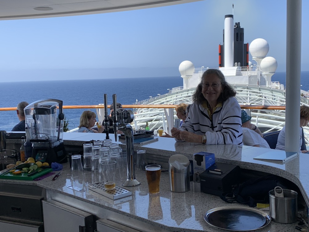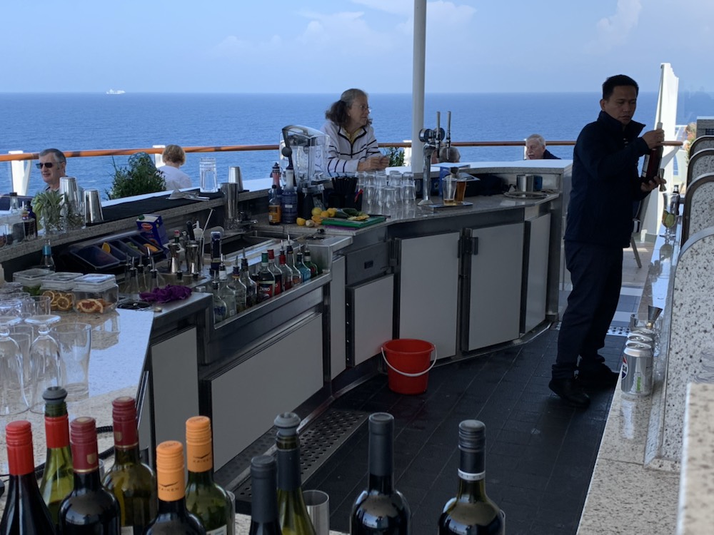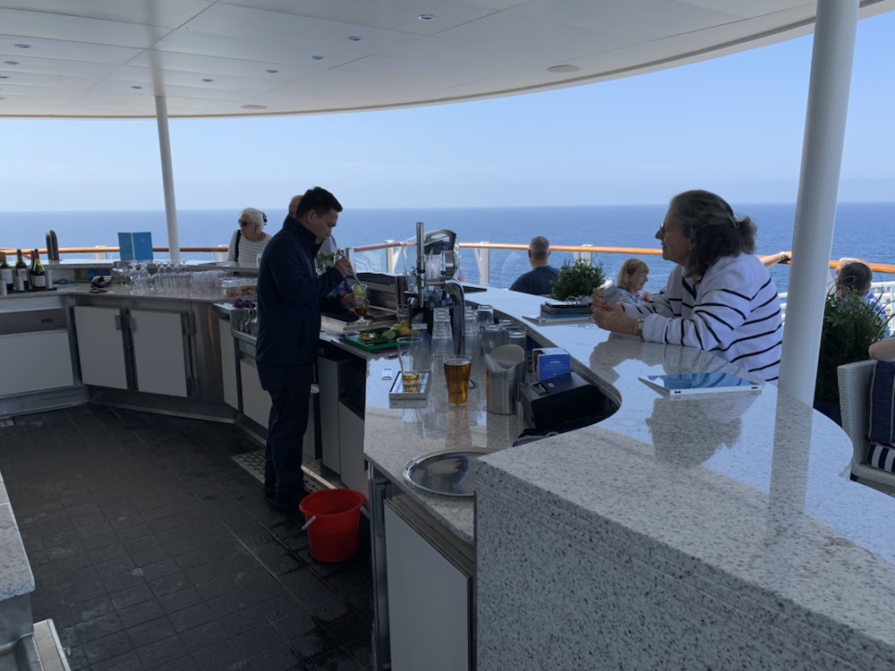 We then decided to go to the “Sky bar” on the 14th deck, to enjoy a PIMS, looking out over the ocean in full sun on a glorious day at sea.