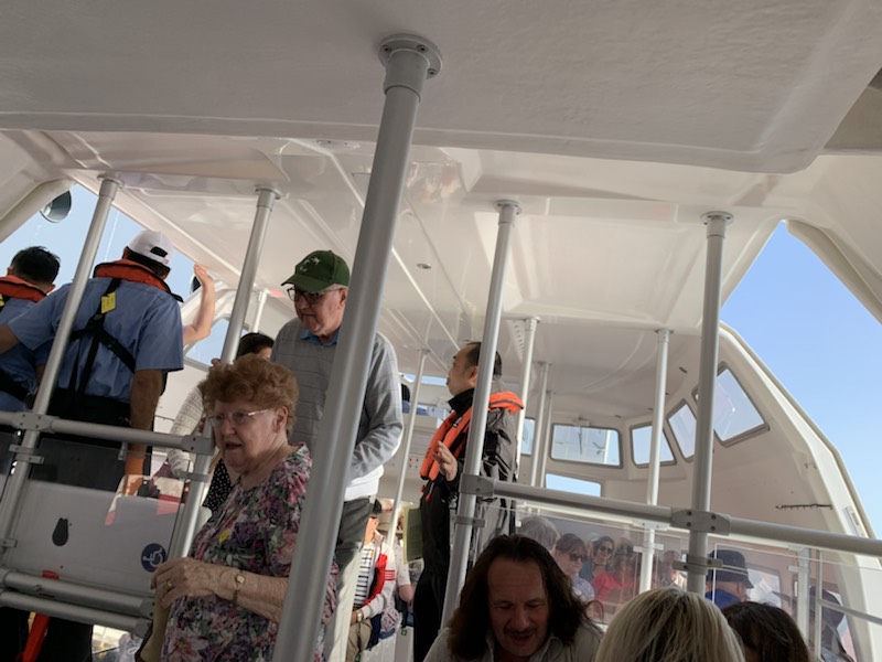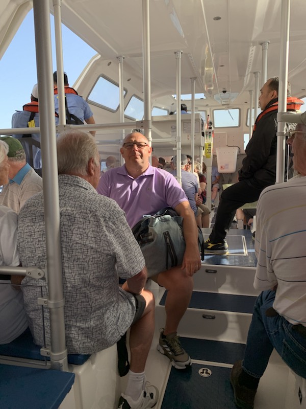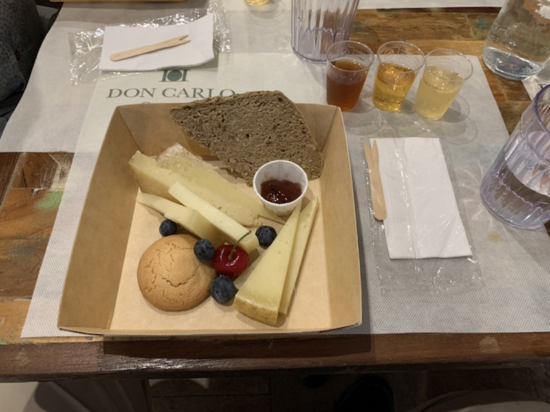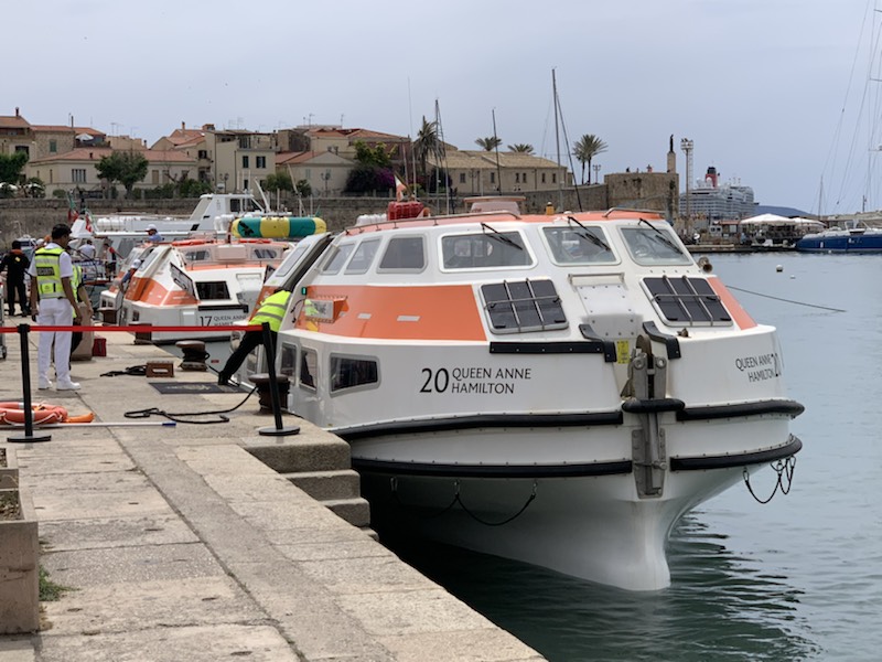 We met in the Queens Room as it was the first port, where the Queen Anne used its own tenders (lifeboats) which were very clean and beautiful. We were the first passengers to get onto the first tender (19) to be used to take passengers ashore as it was an 8:00AM start. Once on shore in Alhegro, we got together with the guide – Vanna who took us to Coach 1 with driver Pietro. It turns out that the coach itself was brand new and on its maiden trip!! All started very exciting. The guide was good and kept up the facts and figures for the one hour drive along the scenic coast road to Bosa. She gave us some historical perspective which goes back 20,000 – 10,000 years with the most notable indigenous group being the Nuragic which was around from the 18th century BCE to the 2nd century CE (AD) in some parts and 6th century in others. The Phoenicians were present, Carthage conquered parts by the 6th century BCE and then by Rome in 238 BCE, lasting 700 years. Vandals (456-534), Byzantium (533 for 300 years), Genoa and Piza republics all had a part of control of the island but it was not until 1324 that the Crown of Aragon was able to control the entire Island until 1718. At which point it was handed over to the Alpine House of Savoy who politically merged their island positions with those of the mainland and became the Kingdom of Italy in 1861 becoming the Italian Republic in 1946. Wine, Olive Oil, and 3 million sheep are the basis of the economy from an agricultural standpoint, with Pecorino cheese being made here and exported around the world. Tourism abounds during the summer season, but 90% of the hotels close during the winter months. A liquor, digestive sweet drink is favored by the locals called Mirto. Often it is made at home, although industrial bottles are available. The recipe consists of 1 liter of water, 1 liter of drinking alcohol, 1 kilo of Sugar and berries from the Mirto plant. They are left to mature together for 40 days and then consumed in small quantities at the end of a meal. The best Pecorino cheese is aged for 5 months although some stronger tasting cheese is aged for a year. In some local communities, the cheese is made with worms, which is considered a delicacy, but is not available to the general public for sale. As we were getting to Bosa, we saw some Griffin Vultures which can get to 1 meter long and a wingspan of 3 meters. Once in Bosa, we were escorted to a park and given 20 minutes free time. Not knowing which way to wander, we walked along a tree lined street which was obviously a place for locals to get daily produce, medicine, clothing etc. A little dilapidated and not very interesting. We assume that as there was no toilet break, this was really a time for those that needed the facilities, to find a coffee shop and make use of the restaurant “happy room” (as it is referred to in Asia)!! Once re-assembled, the guide took us through the narrow alleys that were the streets, barely wide enough for a motorcycle or perhaps 2 people walking side by side, admiring the different, brightly colored houses that were the fishermen homes of years gone by as we were told that as they returned from the sea they could identify their respective homes before reaching land. Due to the flooding of the river that runs through town, the bottom floor is usually an inclined empty room so depending on how high the water is one could enter higher or lower and as the water subsided, it was drained out. They had one room on each floor, with the kitchen occupying the top floor, to easily vent the smoke and to carry the food to the roof which is usually where the meals were served. Because of the water the subsoil was soft and there were some buildings that were in an obvious incline. Eventually we reached a restaurant Don Carlos, where we were offered local cheese and three tiny plastic glasses (like those for taking cough liquid medication) with a dark, a medium, and light colored liquids. The dark was the most aged local wine and somewhat bitter. The middle one, less aged wine had a slightly sweeter taste, and was perhaps the best (or perhaps I should say – the least bad)! The light colored one was sweet and accompanied an almond macaroon type biscuit, which was quite tasty. After a few more minutes of free time we wandered back, crossing the river over an attractive footbridge to the coach, where we retraced our steps along the same coastal road to Alhegro.