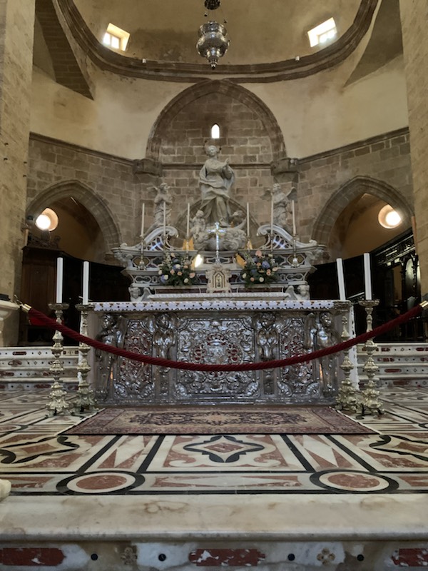 We asked the guide for a good place to eat was and she pointed us to several restaurants past the Cathederal on the “mirador” (scenic view over the water). We stopped at the relatively simple Cathederal, with a beautiful rosetta window and silver altar, being prepared for a wedding. Then to the restaurant, selecting one, but after sitting for a while studying the menu with no service we got up and went to another one. Here at Angedras Restaurant the service was about as bad, but the menu appeared a bit more attractive. The food was at best adequate, so not recommended. We wandered back along the old fortress walls to the tenders, but were accosted by two women and a baby begging for money. Something did not seem right as they were persistent and followed us, a little too closely for my liking. About five paces on, I stopped, felt my back pocket and my wallet had been stolen. We immediately turned around, started confronting the Gypsies, with Anne going after the woman with the baby, diving into the shawl where (the plastic) baby was being swathed, finding 20 Euro notes and took those. The other woman, seeing that things could get worse, threw my wallet on the ground. I picked it up and we scurried away – with wallet and handful of 20 Euro notes!! Crime does not pay when Anne is on the warpath!!!! We should have reported it as Anne recommended, but I preferred to get onto the tender and back to the safety of the ship.
