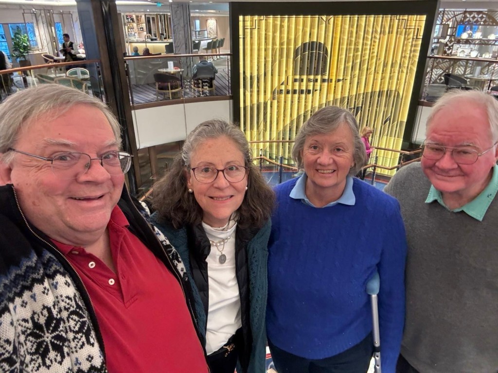 A restful Sunday at sea with a nice ecumenical Church Service conducted by the Captain, followed by a very interesting talk by Nelson Aspen – A Peak Behind The Velvet Robes. He is a famous Hollywood reporter who knows all the stars and had some interesting stories. He had been the entertainment reporter on a morning news program in England for some 10 years and then the main morning news program (Sunrise) in Australia. He is originally from New York, but lived a good part of his life in Los Angeles. He now is back in New York and an author, who has written two books (one about his life in NY and the other LA and will publish his third book in March). All a semi fictionalized story of his life among the stars, changing the names and trying to tell the story as closely as he remembers the various incidents.