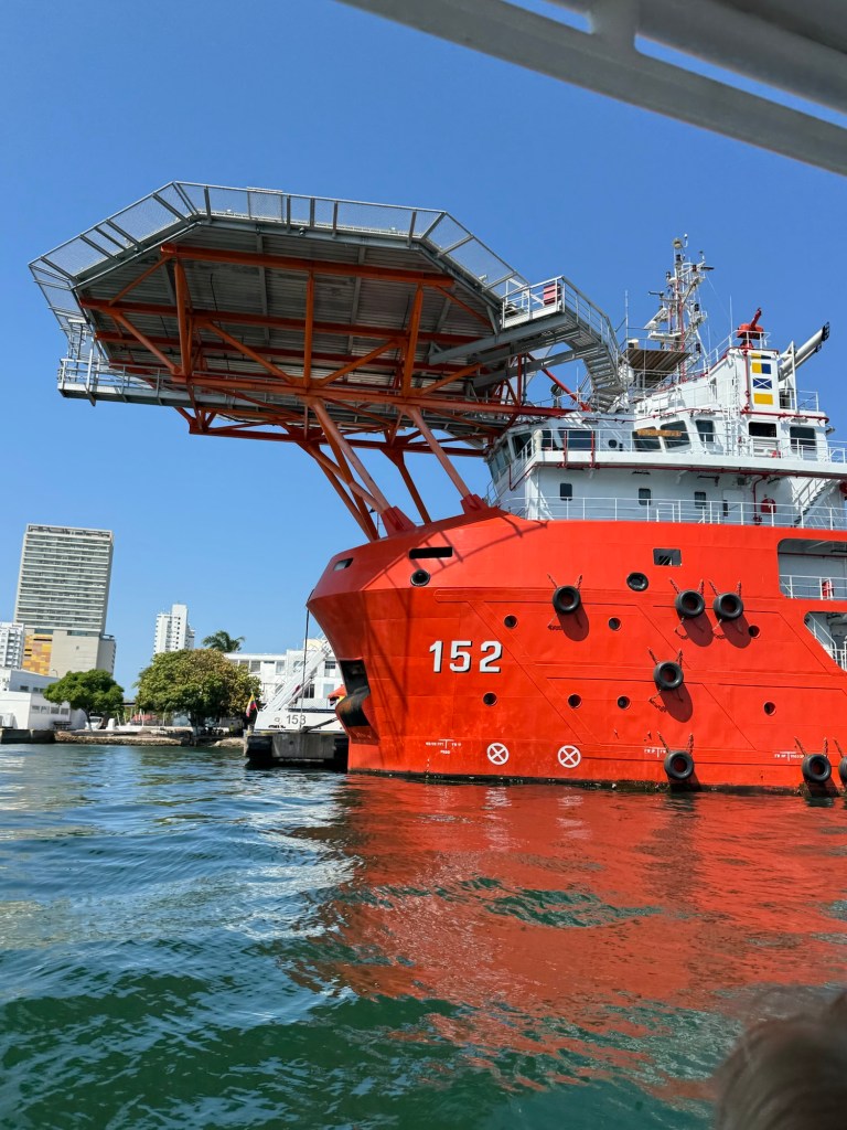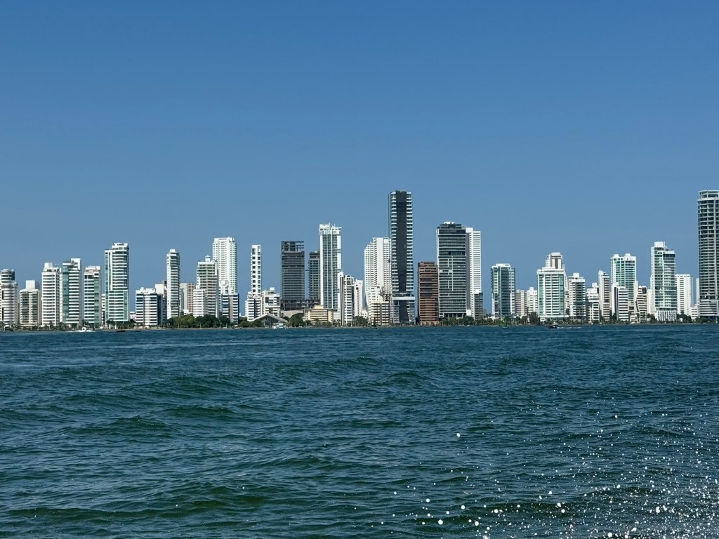 After leaving the old town we made our way over to a separate area of the City with a plethora of sky-scrapers in an ultra-modern city. We boarded a boat which comfortably sat the 40 people on the tour and we visited from the sea the various areas of the city. On one side were the modern sky-scrapers on the other the old Spanish colonial architecture as well as the Naval base with it’s destroyers, submarine and a fascinating ship that operates as a helipad, one assumes from drilling platforms at sea. Another area where the Coast Gard has it’s headquarters, we saw a blue submarine which was confiscated full of drugs as well as other boats that go back to the days when the drug lords operated in Colombia.