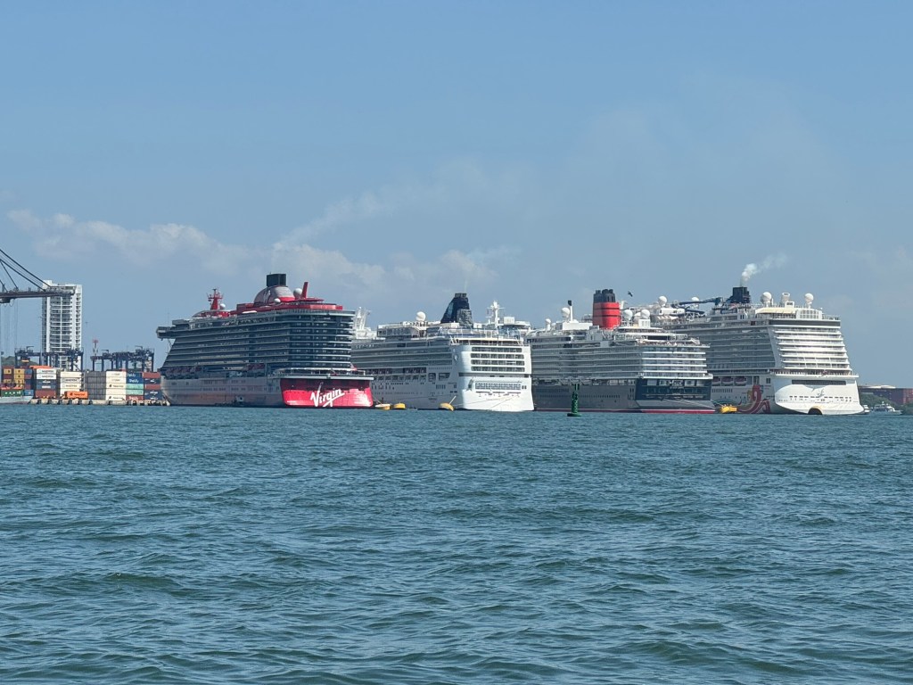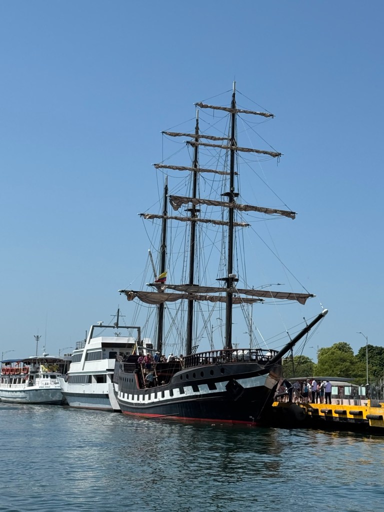The port of Cartagena is big enough to have 5 major cruise ships docked at the same time. Today there were 4, so a busy day in port. A Virgin Cruise ship, the Norwegian Pearl and the Norwegian Joy were parked on either side of us. The port area, some 10 minute walk or less on the shuttle, has an array of shops, bars, restaurants and a mini zoo filled with exotic birds and animals from the region. A really amazing place to visit even if one does not want to venture further into the old or modern town.