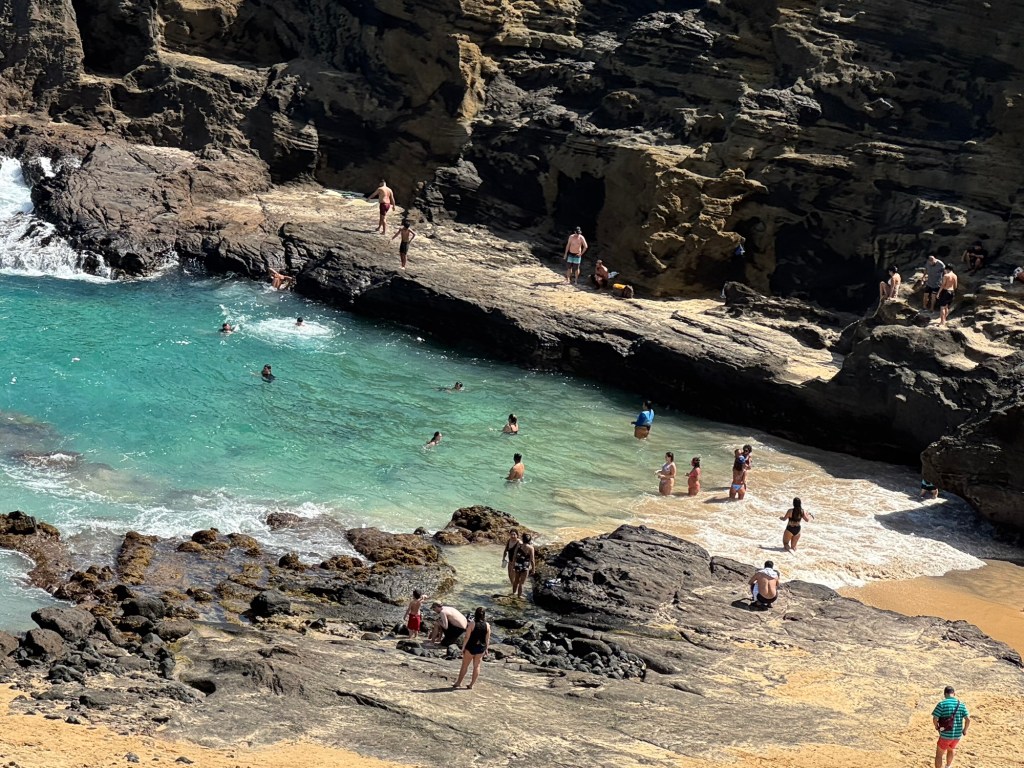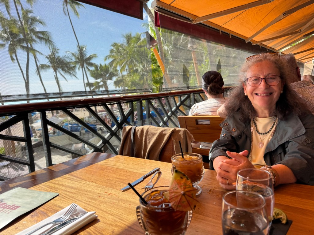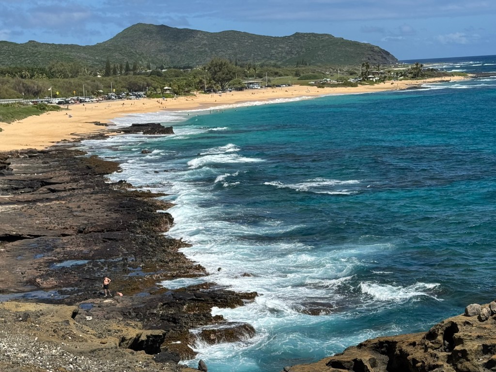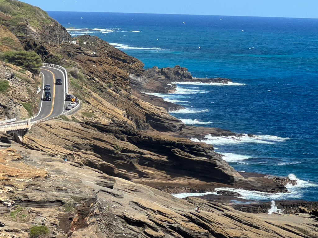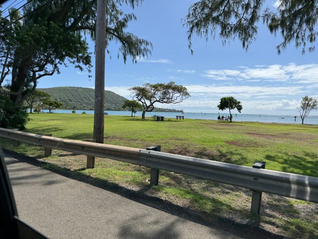 We had not booked any tours, as we felt it would be best to hire a local taxi driver to take us around. What we came across was the first driver, a pleasant man. From Vietnam but unfortunately was extremely limited (I’m being generous) in his knowledge of the English language and our Vietnamese is non-existent! So we went to the second taxi and were pleased that his knowledge and understanding of the English language was somewhat better. He was also from Vietnam. So we set off, giving him a list of places we wanted to visit. We soon found out that his English seemed to be – “This happened before COVID and this happened after COVID” and “ on the right side houses cost $15 Million, on the left side houses cost $10 million”. Nevertheless, we did get a nice impression of part of the Island. We started in Chinatown then to Waikiki Beach area , then to the Diamond Head Crater and viewpoint, through the very wealthy Kahala residential area past Hanauma Bay to Halona Blow Hole looking over the gorgeous sandy bear park to Makapu’u Point. We then returned to the ship, but decided that it was best if he dropped us at Waikiki Beach area where we had lunch overlooking the beach at the Hula Grill in the Outrigger Waikiki Beach Resort Hotel. A nice lunch and a spectacular view.