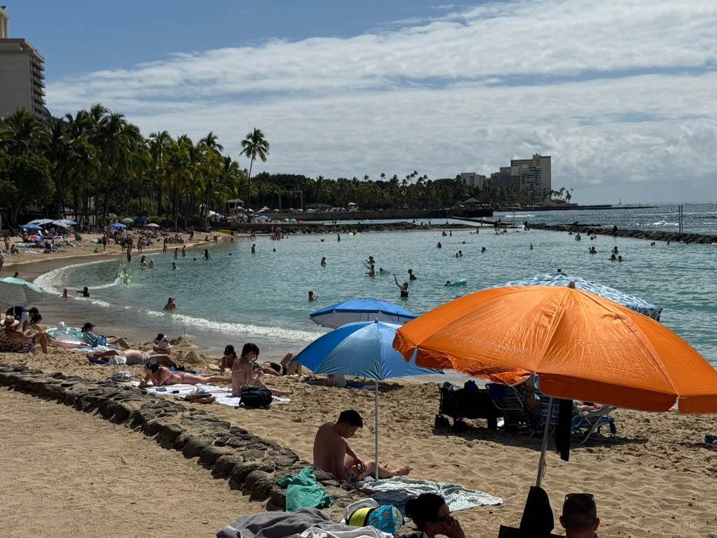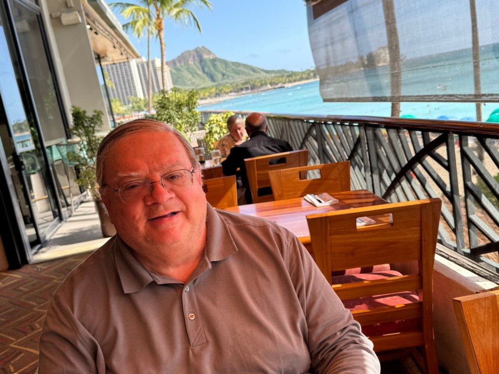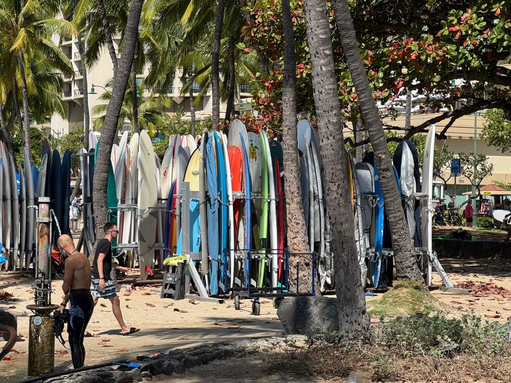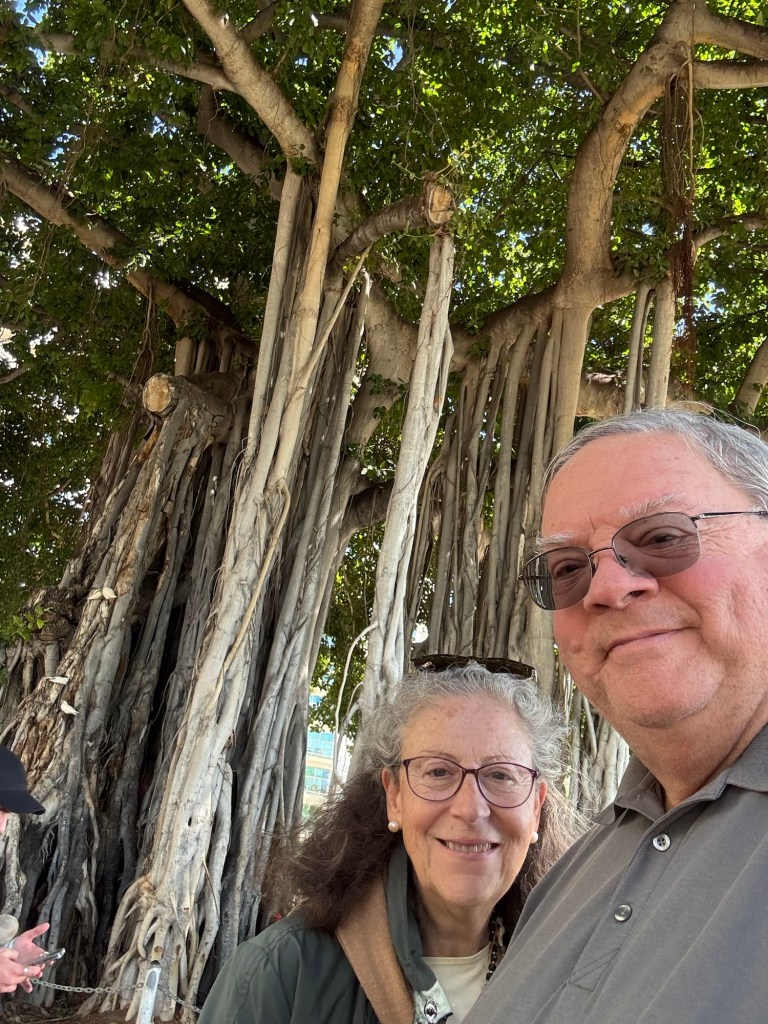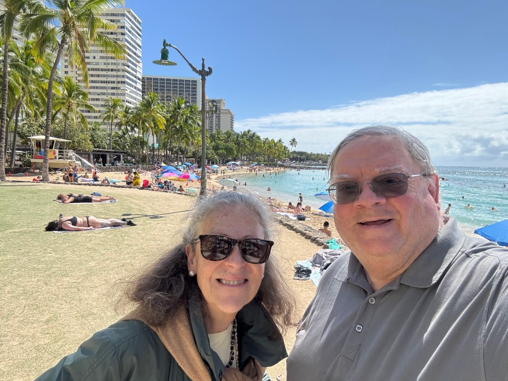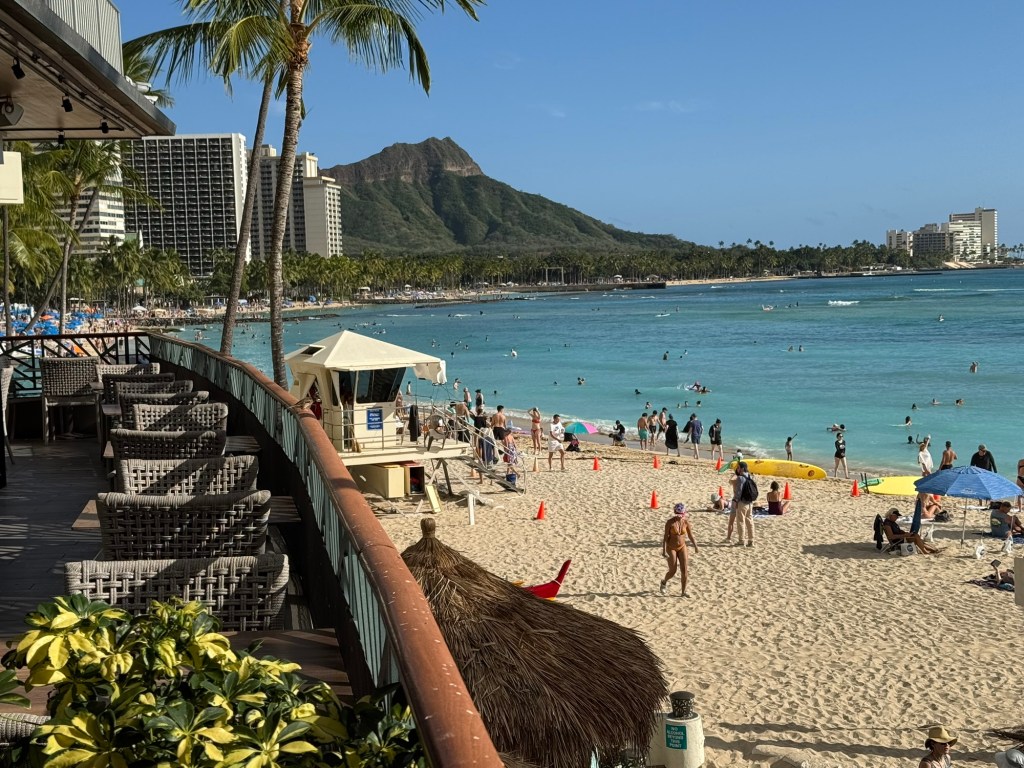 We had not booked any tours, as we felt it would be best to hire a local taxi driver to take us around. What we came across was the first driver, a pleasant man. From Vietnam but unfortunately was extremely limited (I’m being generous) in his knowledge of the English language and our Vietnamese is non-existent! So we went to the second taxi and were pleased that his knowledge and understanding of the English language was somewhat better. He was also from Vietnam. So we set off, giving him a list of places we wanted to visit. We soon found out that his English seemed to be – “This happened before COVID and this happened after COVID” and “ on the right side houses cost $15 Million, on the left side houses cost $10 million”. Nevertheless, we did get a nice impression of part of the Island. We started in Chinatown then to Waikiki Beach area , then to the Diamond Head Crater and viewpoint, through the very wealthy Kahala residential area past Hanauma Bay to Halona Blow Hole looking over the gorgeous sandy bear park to Makapu’u Point. We then returned to the ship, but decided that it was best if he dropped us at Waikiki Beach area where we had lunch overlooking the beach at the Hula Grill in the Outrigger Waikiki Beach Resort Hotel. A nice lunch and a spectacular view.