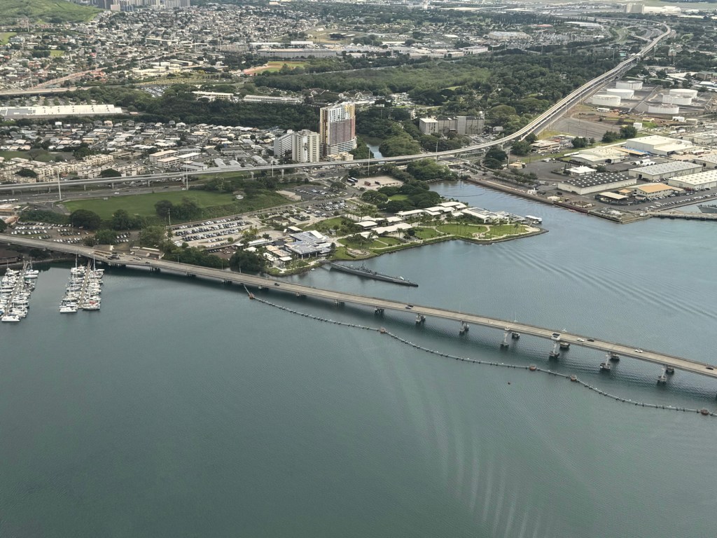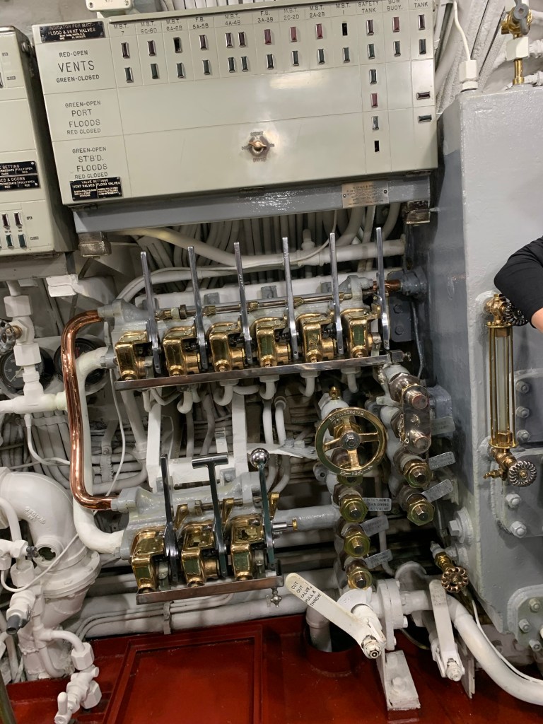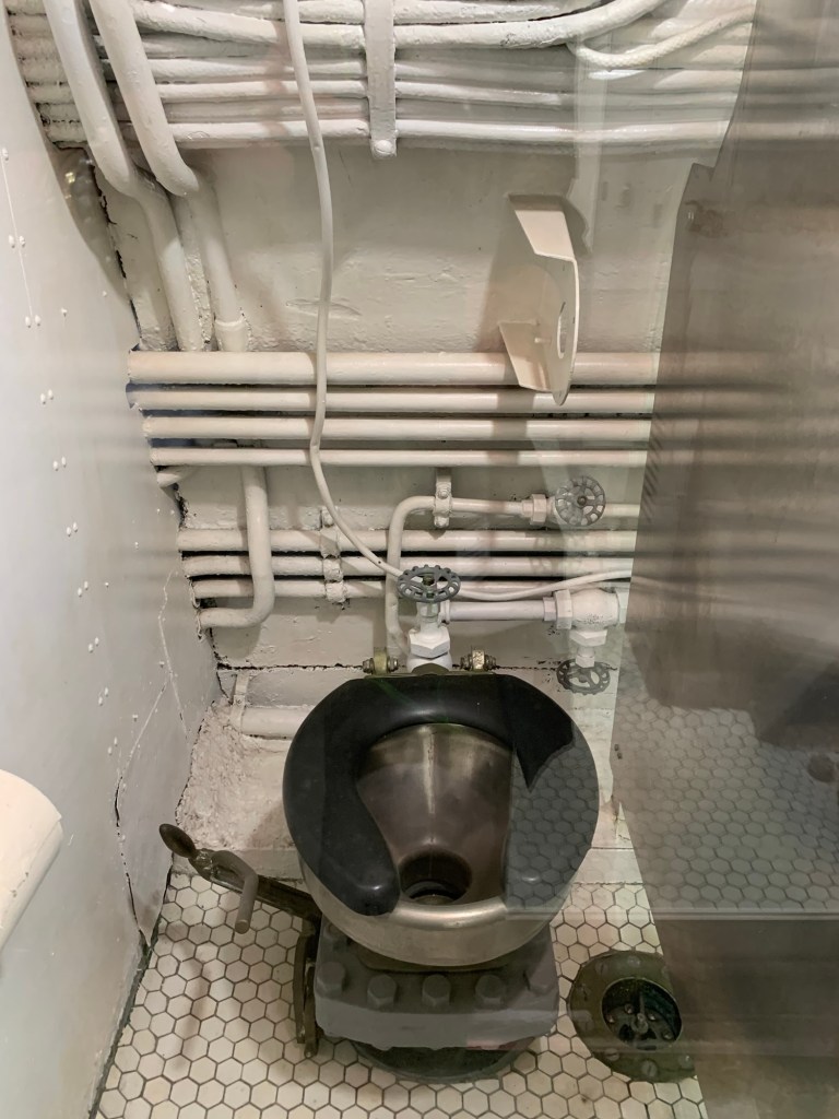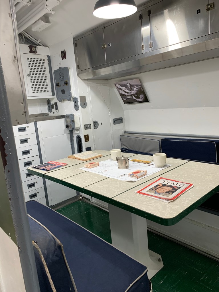 The entrance and visit to the USS Arizona is free, but access to the other ships etc has a cost and a per site or all day pass can be purchased. If you have an interest in the entire story, it certainly is well worth a full day visit. A small snack bar is available, but Anne, bravely visited the Bowfin submarine that is one of the other ships in the area. At the entrance of the submarine there is a cafe where one can order burgers and hot sandwich type meals and an open air, covered seating area where there is a nice breeze and a great place to go for nutrition during the day. I say “brave” as anyone who is in the slightest claustrophobic, should definitely not attempt to visit the Bowfin. Anne’s pictures demonstrate the close quarters that are the submarine and the home of 60 sailors. Triple bunk beds are in constant use with each sailor resting for 8 hours then on duty for 16 while two others used the same bunk each having it for 8 hours at a time. Only the cooks were permitted to take daily showers. Toilets were cramped and even the Captain who had a single bed and desk was cramped, senior officers had 2 bunk beds to a room, others 6 to a room and the “men” 16 to a room. Winding passage ways with a myriad of weapons, cables gauges etc filled the restricted space.