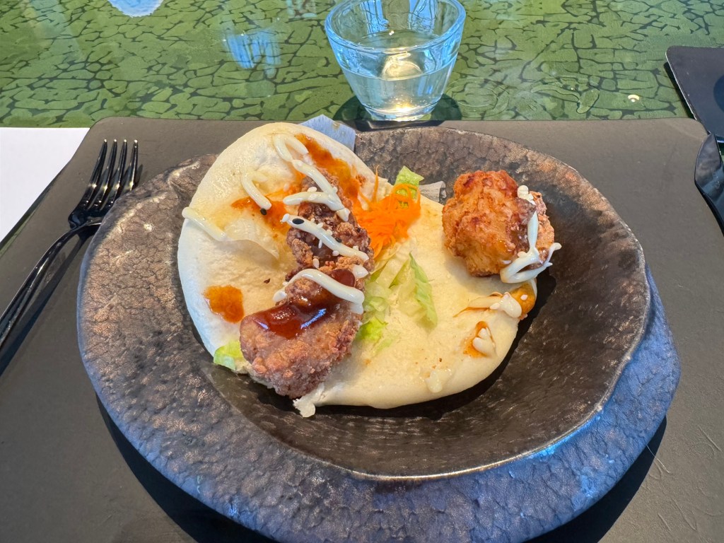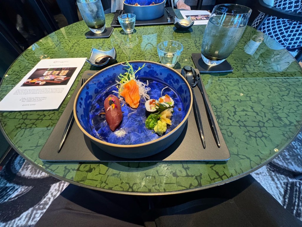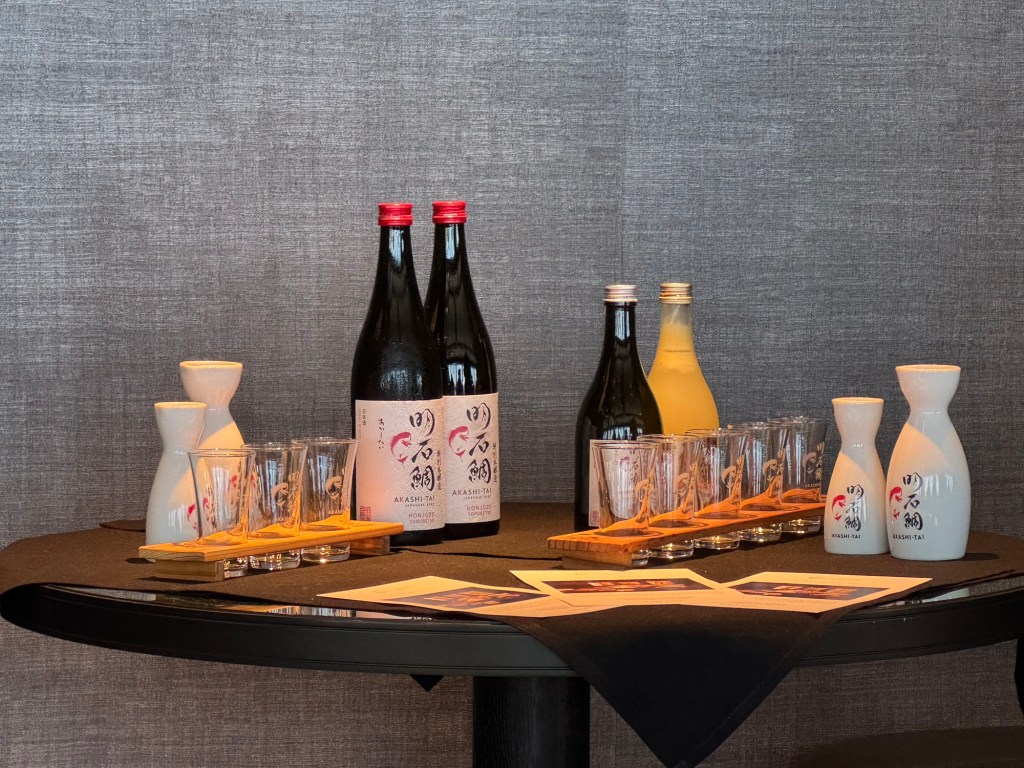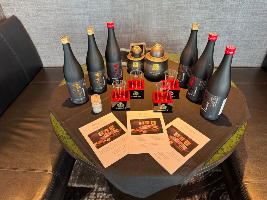 We then went to Ají Wa – The Japanese restaurant to join in the first “Lunch and Learn” all about Sake. Here is the Menu and Sake (all from the Akashi Town area near Kobe & Osaka in the Hyōgo Prefecture on the Pacific Coast of Japan) pairing:-