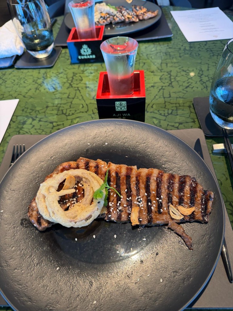 Grilled Wagyu (Marble 4-5) Garlic Crisps, Onion and Sesame